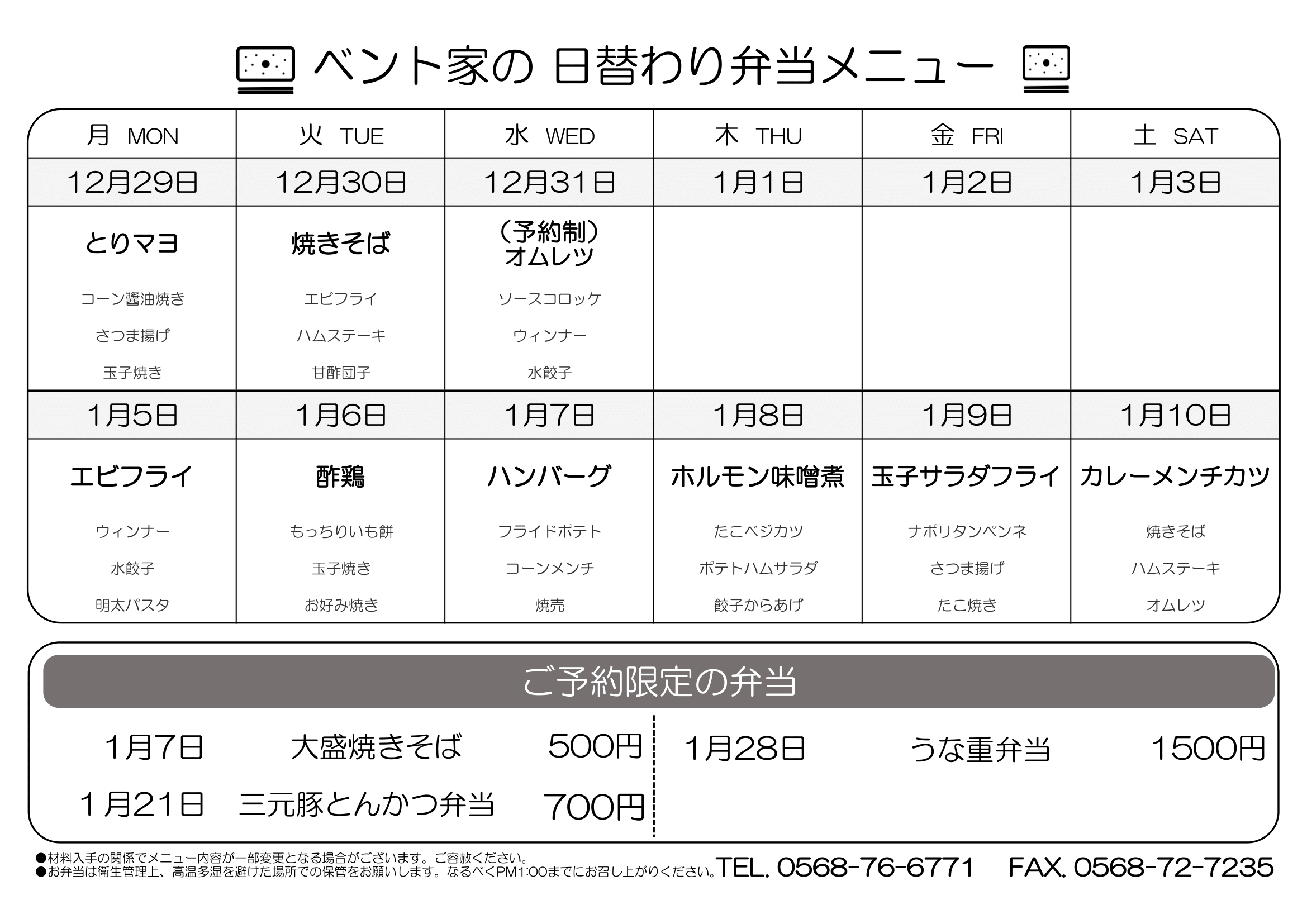 小牧・春日井・犬山・扶桑に配達!2025年12月29日からの日替わり弁当 – 配達・宅配 2026.01.09 愛知県小牧市、春日井市の一部、岩倉市の一部、北名古屋市の一部、豊山町の一部、犬山市の一部、扶桑町の一部、名古屋市北区の一部、大口町の一部の企業、オフィス、工場、団体、学校の皆様へ美味しいお弁当を心を込めてお届けいたします。 Tweet Share RSS Pin it